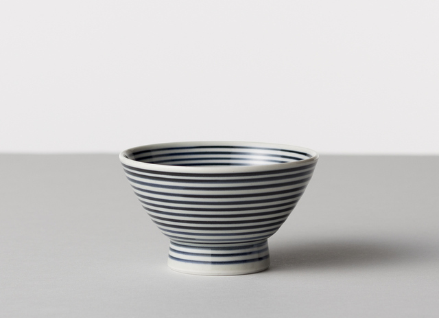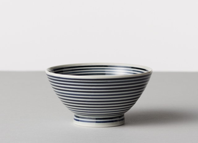手書きで描かれる線が特徴の藍駒の茶碗。一本一本が手書きのため線それぞれに微妙な違いがあります。高台をしっかりととっているので使いやすさもとてもいいです。和・洋どんな食卓にも合う日常使いの茶碗です。