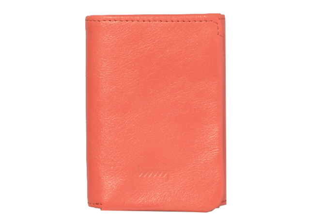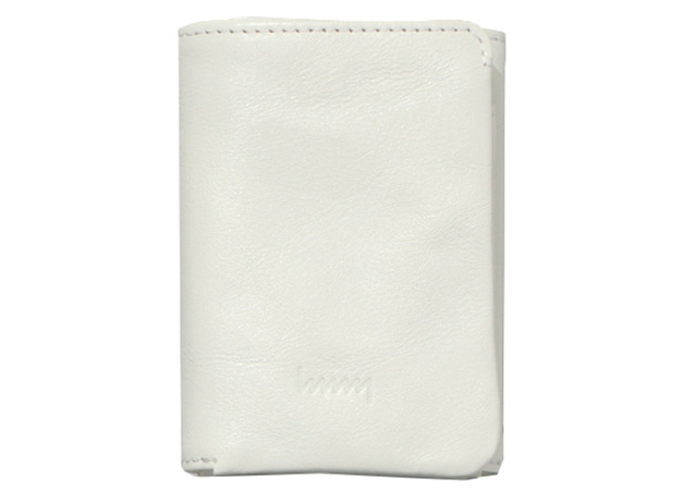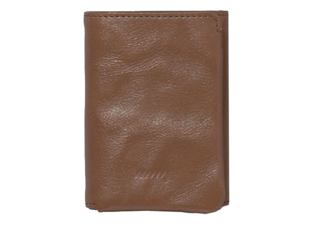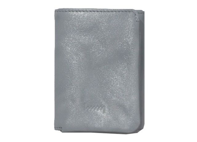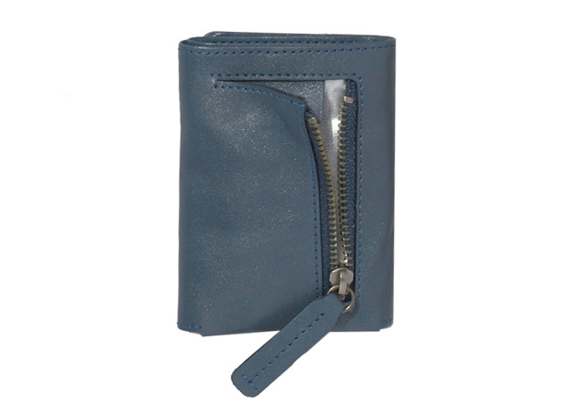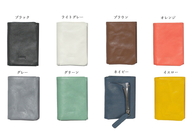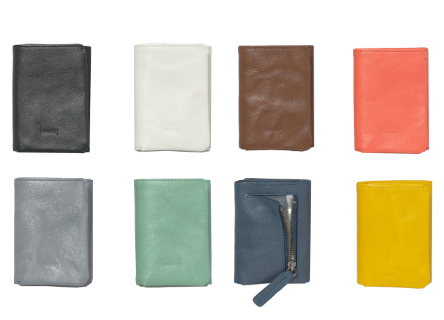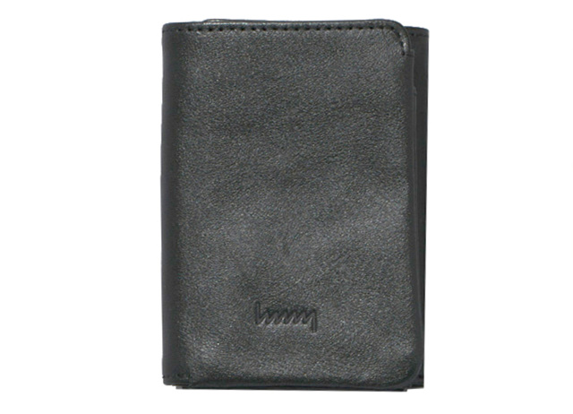 片手の平にすっぽり収まるhmnyの3つ折り財布。