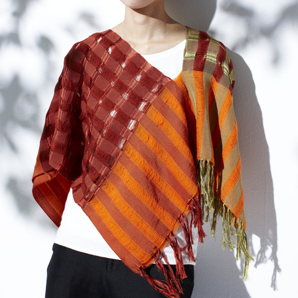 デザインのみでなく様々アレンジも容易にできるFOREST。羽織ったり、巻いたり、首通したり。ひとつで何通りにも愉しめる、工房織座のこだわりがつまった逸品です。