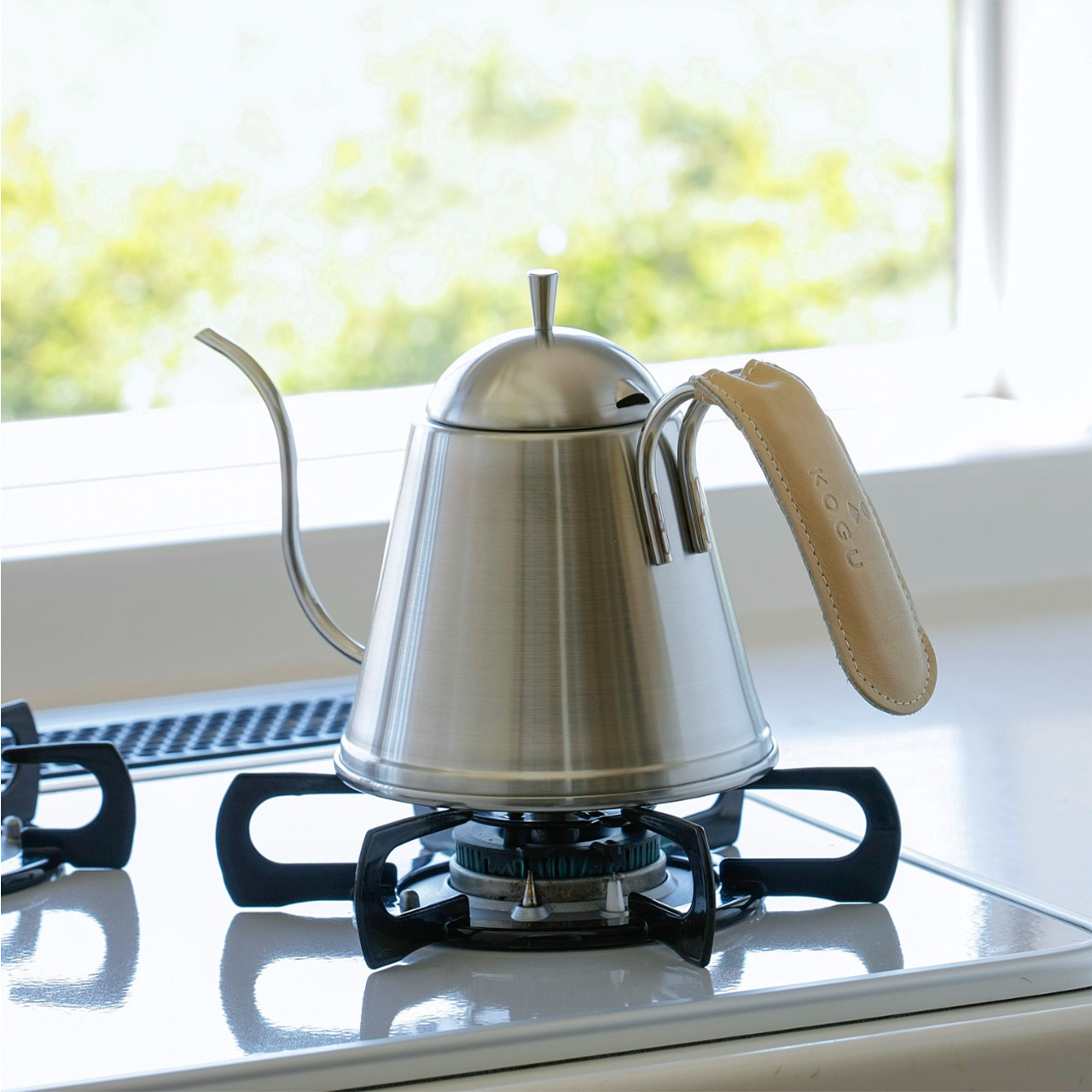 珈琲考具のツードリップポット、ドリップポットITTEKI、ミルクパンで使用できる牛革のハンドルカバーです。直火を使用してハンドルが熱くなっても安心です。