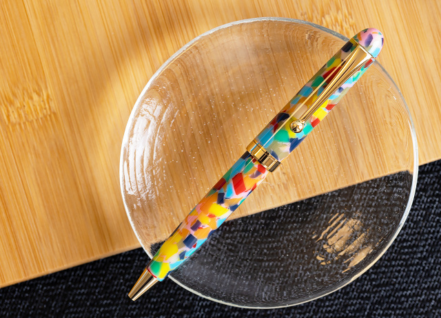 繊細で複雑な配色のアクリルボールペンは、