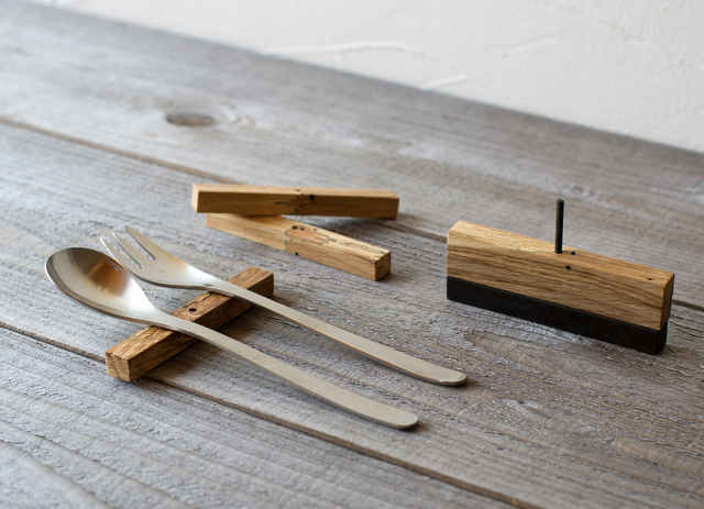 木は富山県産ナラを使用したカトラリーレスト、もちろん箸置きにも使えます。