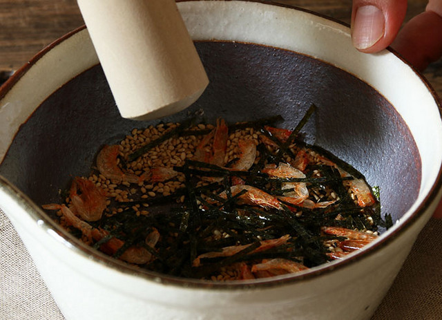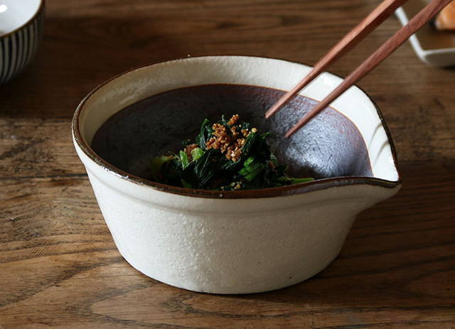 ![]() 小さい方のスパイスすりバチは小鉢としても。 |